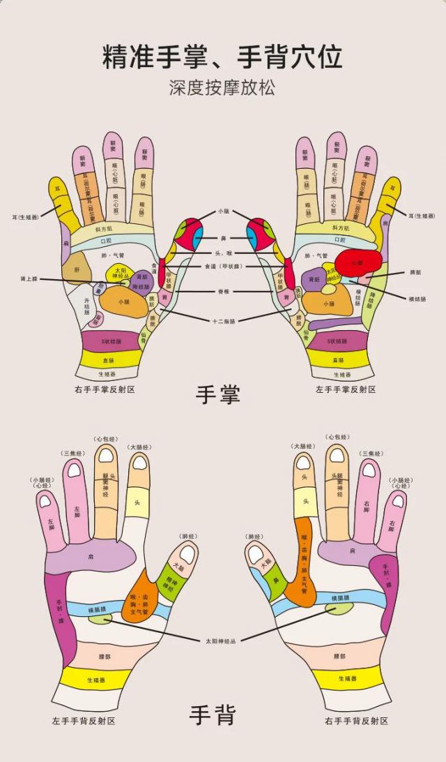 要知道,手和脚一样,有超多的穴位,分管着不同身体部位的穴位。