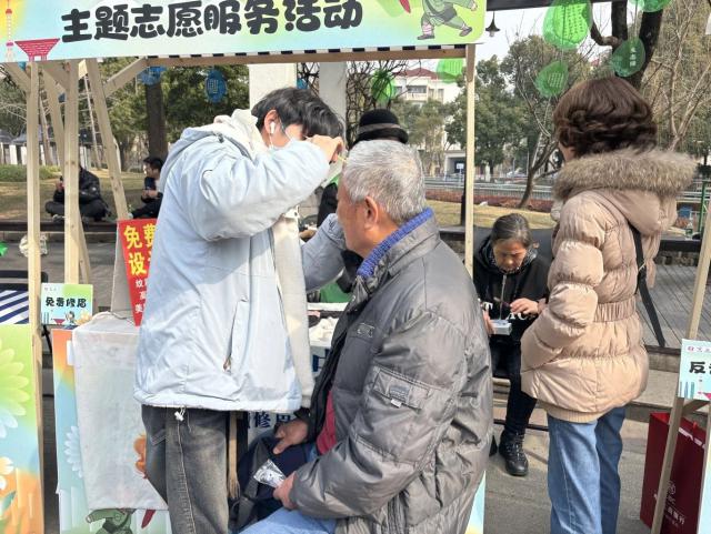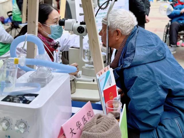 在免费门诊服务区,专科医生为居民提供中医保健宣传、眼科护理、口腔检查服务,免费为居民测量血压和血糖。考虑到凌云街道老龄人口比例较高,近期气温波动较大,正处于季节转换阶段,免费门诊医生重点宣传冬春季常见慢性病的防治方法和日常生活中的注意事项。