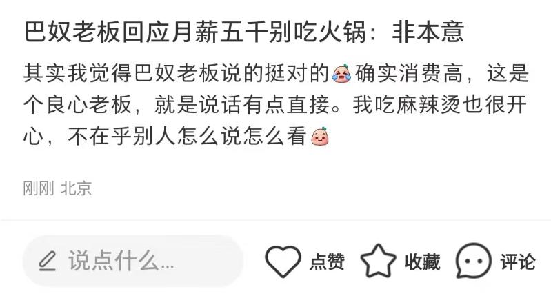 “火锅不是给底层人民吃的”、“月薪5000你就不要吃巴奴了,哪怕吃个麻辣烫。”