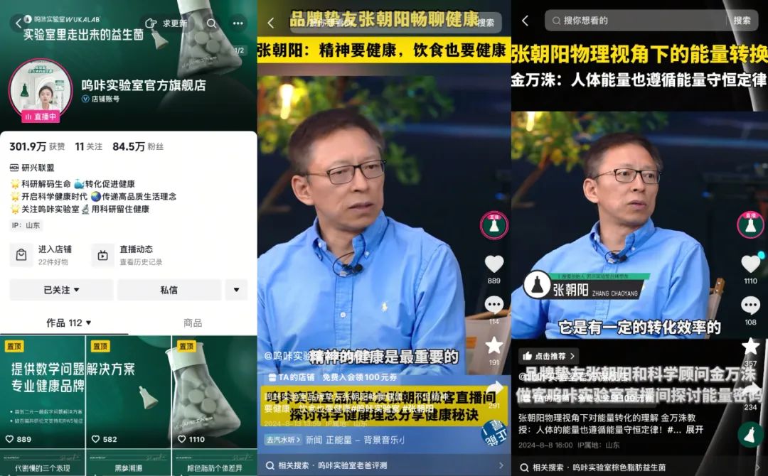 保健品牌几乎都要依靠专家/KOL背书(尤其是医生、营养师IP)降低用户决策门槛。测评、科普类内容易引发共鸣,推动“种草-转化”闭环。比如,呜卡实验室就是借用搜狐集团创始人张朝阳的素材作为背书,获取大量新用户。