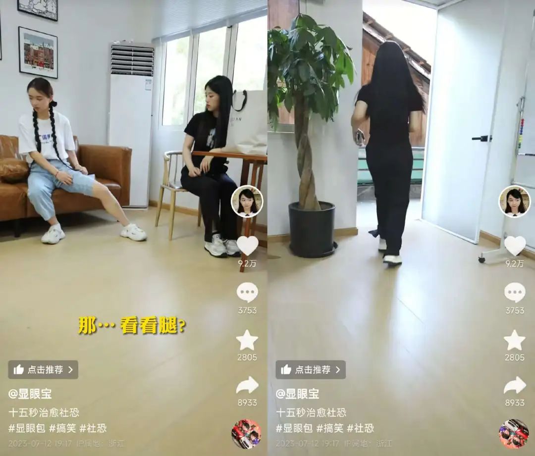 “我记得还蛮清楚的,那天我们团队在外拍,‘-显眼宝-’抖音粉丝100万整的时候,我在车里感叹,这碗饭我们是能继续吃下去了。”小颖说,这个时候她也开始真正明白创作的意义,把团队创作工作的支点看得更实,更想弄明白支撑创作的方法论和原理,更多去思考如何在表演上同频编导的节奏,而不是单一地寄托在“被多少人喜欢”上。