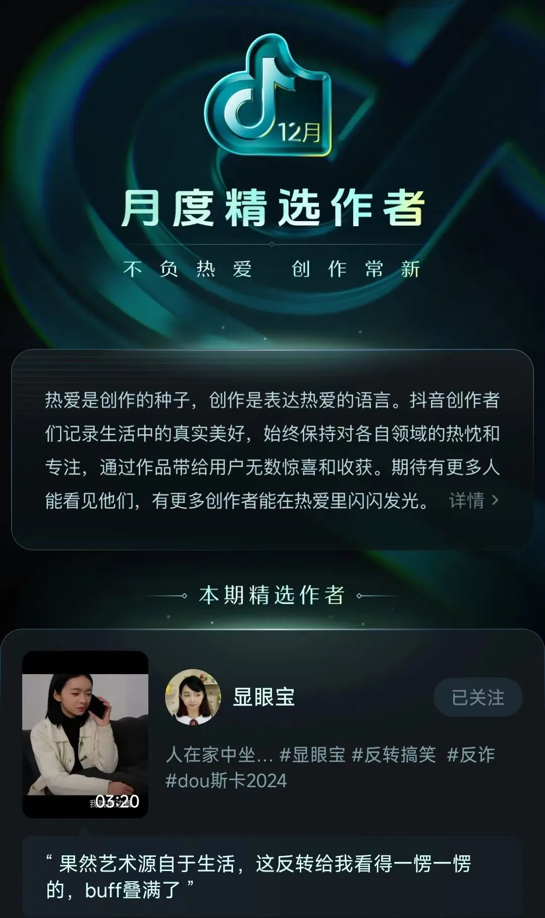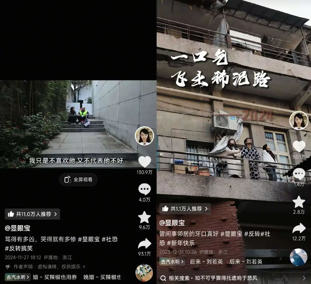 2023年,大学毕业没几年的小颖和一群小伙伴辞职创业,开始运营“-显眼宝-”这个账号,并凭着社恐人设、反转剧情的设计吸粉无数,不久前还入选了“抖音精选作者”。