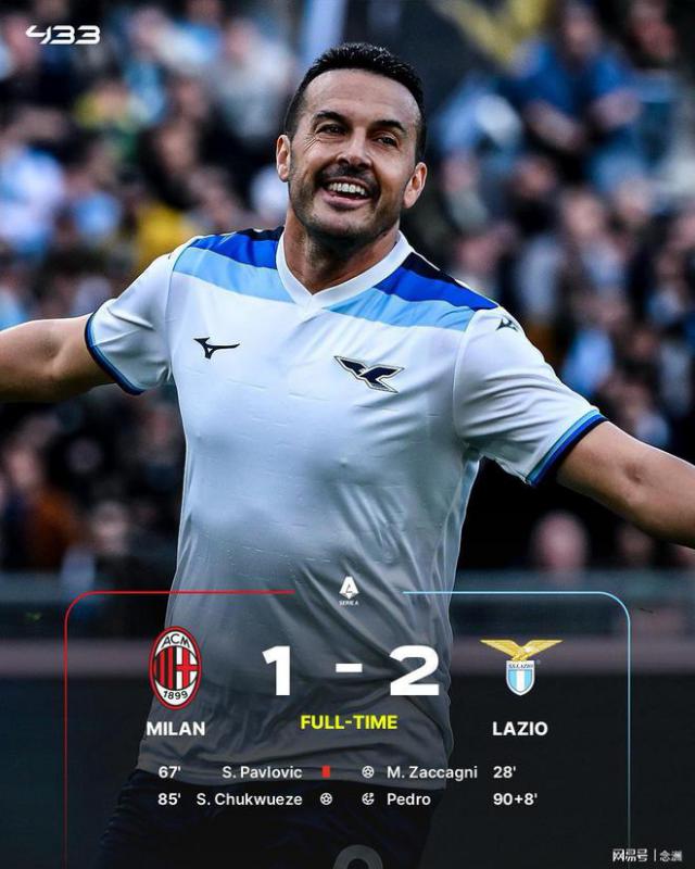 意甲第 27 轮,AC 米兰主场 1-2 不敌拉齐奥,惨遭 3 连输跌到第 九。扎卡尼先领先,帕夫洛维奇直红被罚下,丘库埃泽扳平比分,迈尼昂送点,佩德罗读秒点球决杀。
