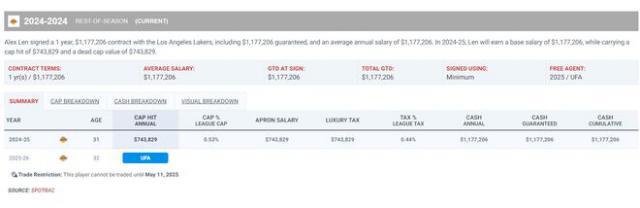 湖人队与莱恩签下了一份价值。 74 一万的底薪合同,因为莱恩有 2.13 大米的大小,当时很多人还是觉得这个签约赢麻了。