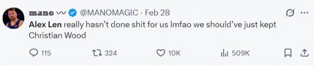 湖人队媒体:莱恩到来后一点效果都没有,我们还不如留下伍德。