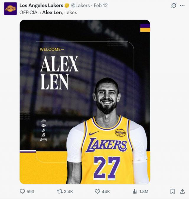 回到北京的时间 2 月 12 日本,洛杉矶湖人队正式签下亚历克斯自由球员。 - 莱恩,每个人都认为莱恩到来后将成为湖人队的交替中锋,他将帮助海斯承受大部分的篮板压力。