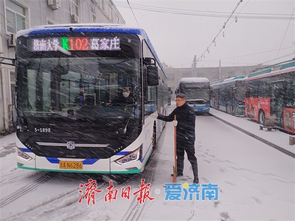 风雪中,济南各级公交管理人员上站上线,前往冰雪湿滑道路实地调查道路通行情况,观察主要客流节点客流,维护网站登机秩序。根据路面的实际通行情况,在保证安全的前提下,采用灵活有效的调度方式,如区间车、大站快车、直达车、跨线支援、中段停车等。,从而提高车辆的运行效率和线路运输能力,最大限度地减少低温、雨雪天气对市民正常出行的影响。同时,济南公交实施每日调度,科学制定行车操作计划,及时增加线路列车次数投入,加强线路运行秩序控制,充分发挥三级调度作用,及时监控调整线路运行秩序,最大限度满足市民和乘客的出行需求,提供专业的出行服务。(济南日报·爱济南记者:刘文忠 通讯员:崔芳芳 韩龙)