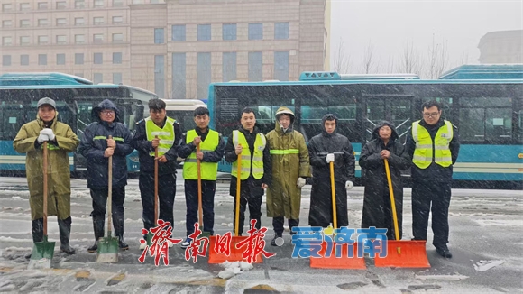 3月2日,面对持续下雪,济南公交车应从车辆保障、运营服务、线路勘测、安全运行、网站值班、积雪清理等方面进行应对。公交车上的人坚守在风雪中的工作岗位,尽最大努力温暖和保护公众的出行道路。