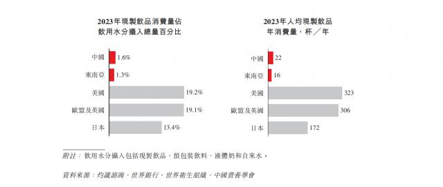 值得注意的是,与发达市场相比,中国现有饮料有很大的增长空间。数据显示,2023年 每年中国人均年饮用现制饮料。 22 杯,预估 2028 年份将提高到年份 51 杯。此外,2023 2008年,中国现制饮料消费占饮用水总摄入量。 1.6%,而发达市场在 10% 以上。