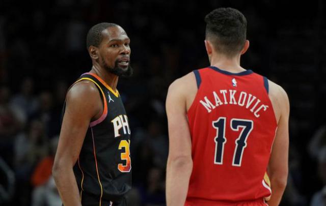 到目前为止,杜兰特场均。 26.7 分 5.9 篮板 4.3 助攻,投篮命中率 三分命中率53.1% 40.1%。太阳 28 胜 32 负面,暂列西部第一 11 位。现年 23 岁马特科维奇是 2022 年度选秀大会次轮总第 52 号秀,他本赛季才登陆。 NBA。