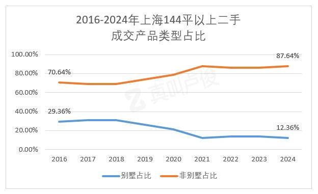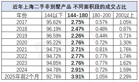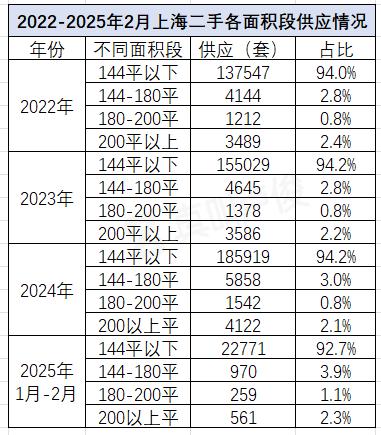 第二个主要原因是供应稀缺。从2022年到2024年,二手房的供应主要在144平方米以下,长期保持在94%左右,今年年初才勉强降到92.7%。