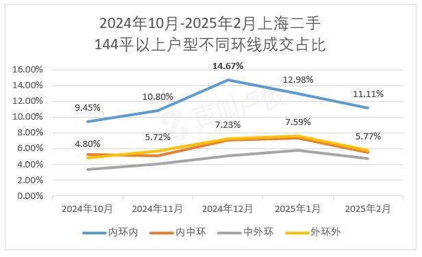 从环线来看,内环最多。去年10月,不到10%。新政实施本月增加到近15%,这两个月保持在10%以上。也从侧面说明我们在用脚投票,更愿意选择。大规模的城市二手房。