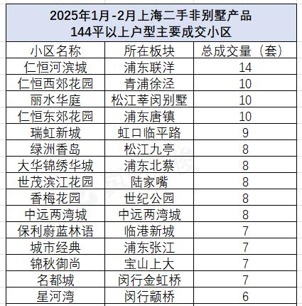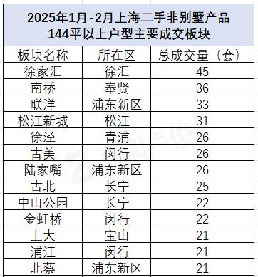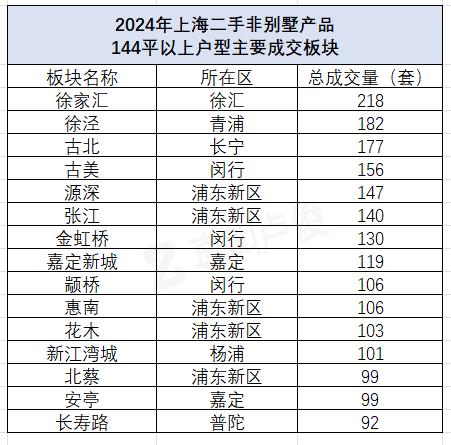 在浦西,长宁、静安和徐汇也是144平方米以上房屋的主要交易区。