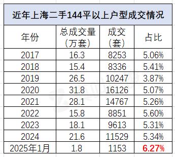 根据近几年的交易数据,在全市交易中,超过144平方米的房屋大概在全市交易中。占比只有5%,相当于每笔交易 100 房子里,只有 5 套是 144 平以上, 的确不算太多。