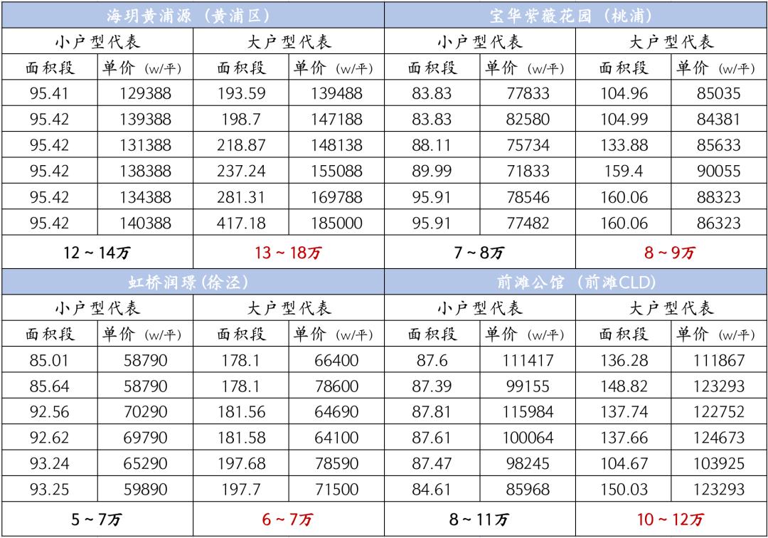还有徐泾、嘉定新城、安亭等郊区板块,自然有大量的大型房间类型。
