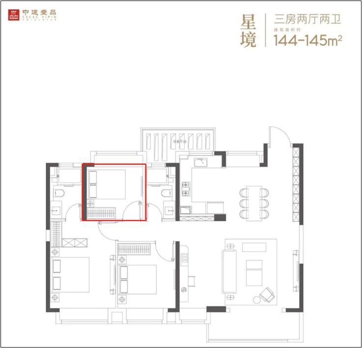 假如按照144平、75%的得房率来计算,第三间房的面积一下子翻了一番,可以从15平开始,实用性一下子就强了许多。