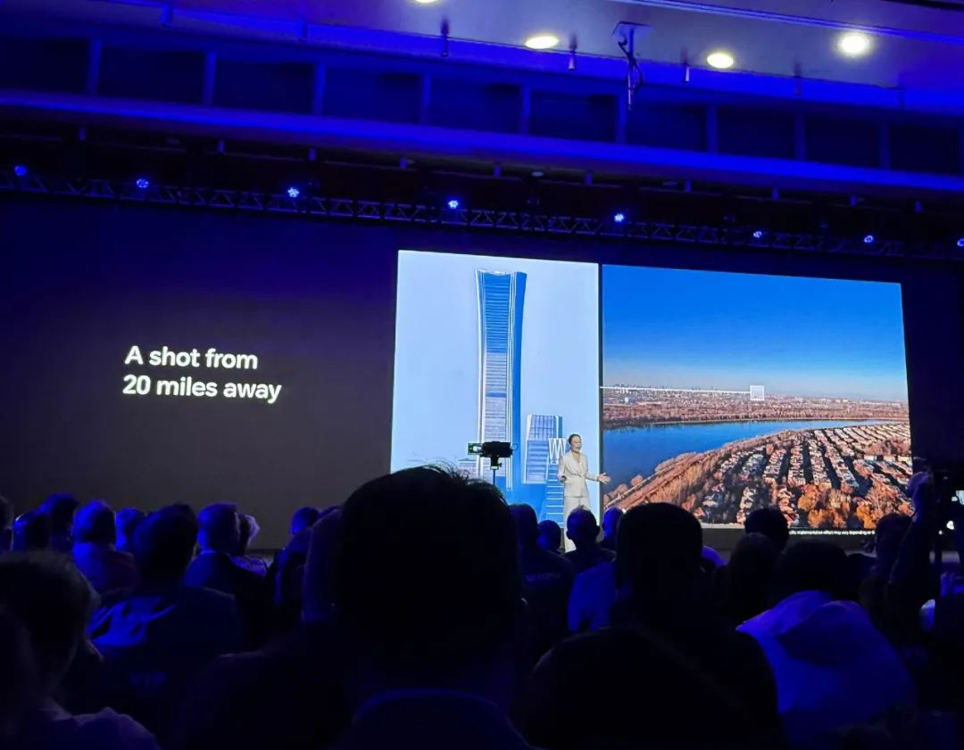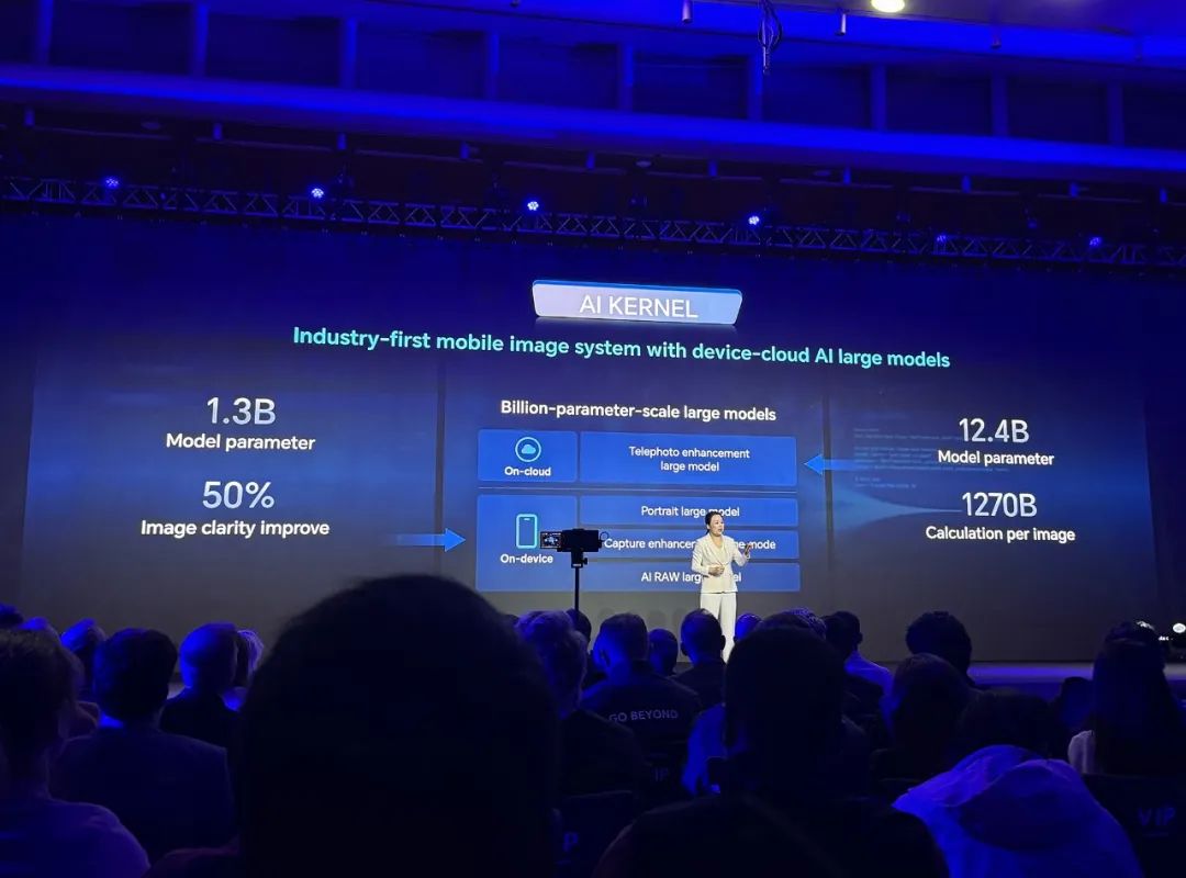 终端模型有13亿个参数,可以提高50%的清晰度,增强肖像拍摄效果;云模型参数规模达到124亿,每张图片可计算1.27万亿次,大大提升了远距离拍摄图像的画质,通过AI高倍放大20公里外的细节,让拍摄图像在手机屏幕上清晰可见。