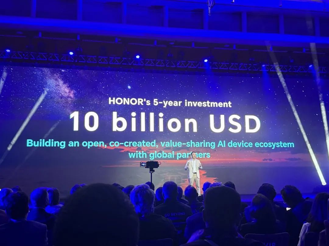 今天,荣耀展示了“投资100亿美元发展AI设备生态五年”的巨大努力,展示了其推动AI创新、成为全球AI设备生态管理者的雄心壮志。