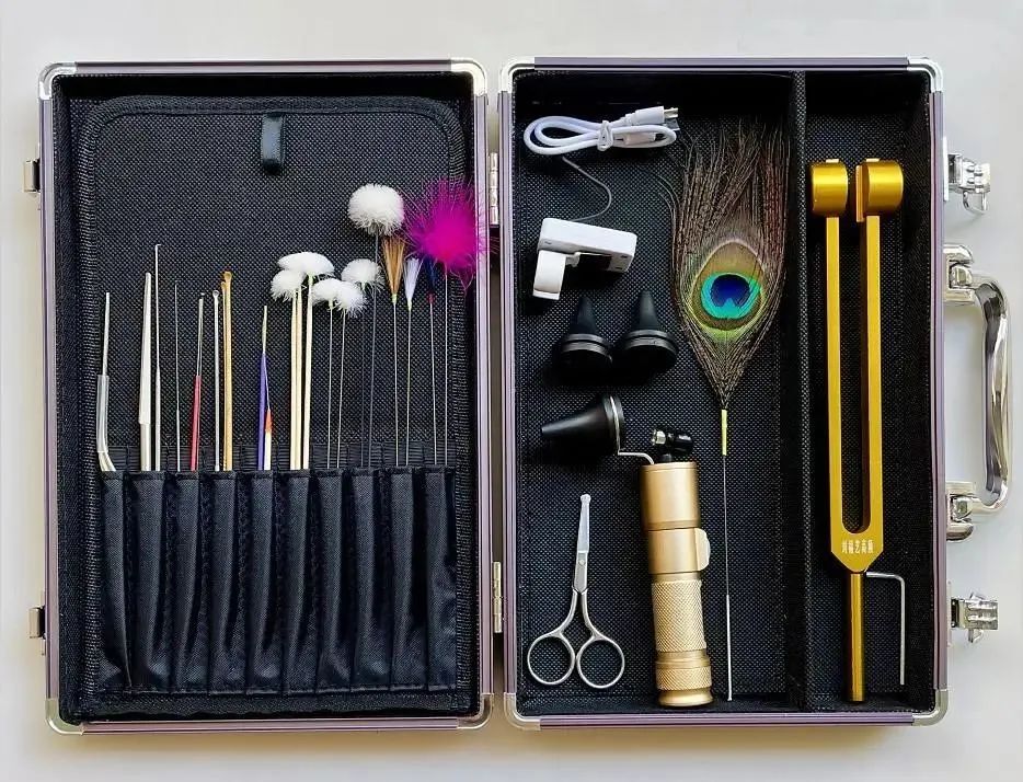 采耳工具种类繁多。当采耳师在顾客面前排列耳勺、耳扒、云刀、马尾扫、孔雀毛、鹅毛棒等工具时,顾客的期望会立刻被填满。