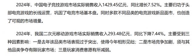 按人民网发布《 2024 年度中国游戏产业报告 》,去年我国二次元移动游戏市场整体实际销售收入 293.48 亿元,同比下降 同时,7.44%面临着竞争激烈、顾客付费意愿下降等问题。