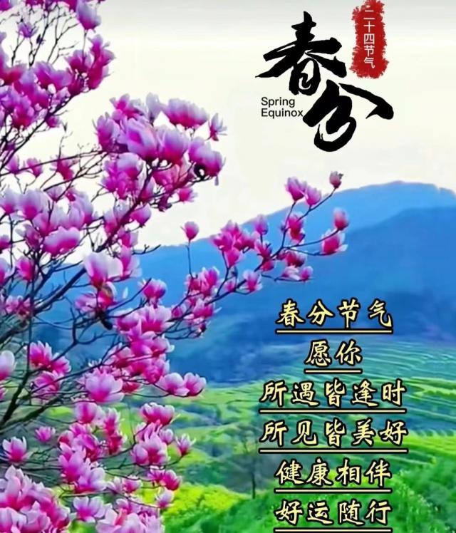 春分时节,昼夜平分。希望你能在生活和工作中找到平衡点,一切顺利有利!愿你每天都像春天一样充满活力和活力!祝你永远微笑。春分快乐!