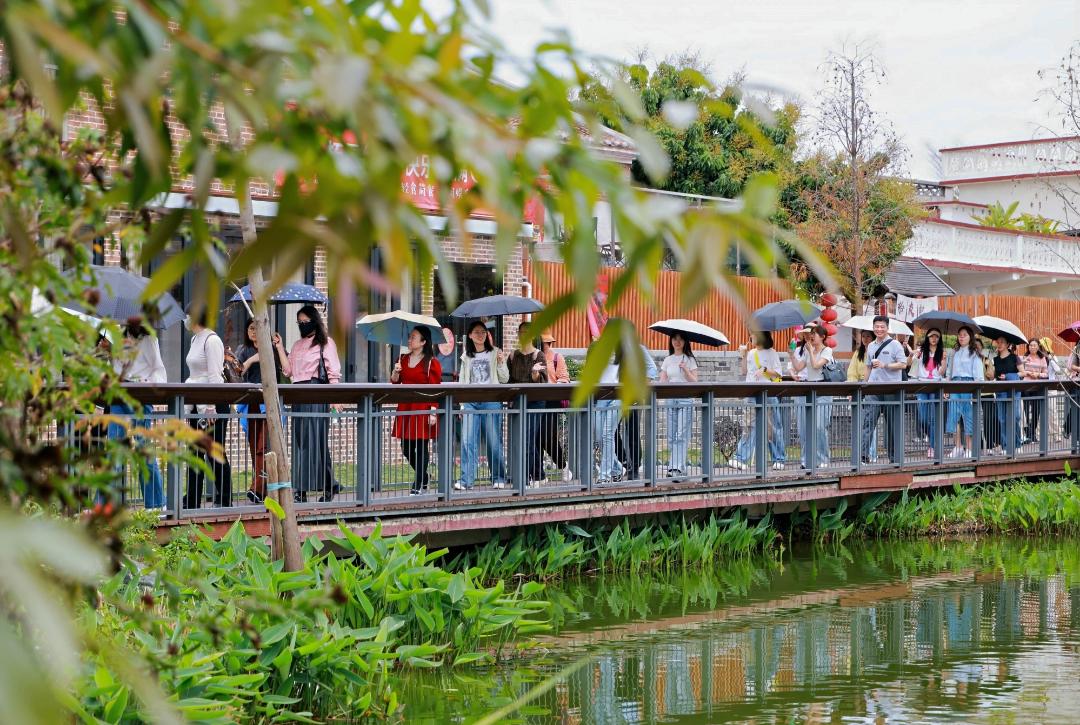 女同胞在古祠堂、水上栈道、青年创业街漫步,感受旧村居环境改善和活跃带来的“一步一个脚印”。该地区通过夜市经济、文化创意产业等新业态,促进集体资产增长22%,人均收入和幸福感明显增加。在青年创业街上,女企业家通过改造祖屋发展茶叶、手工制作等业态的例子,展示了“庭院变钱景”的创新实践。