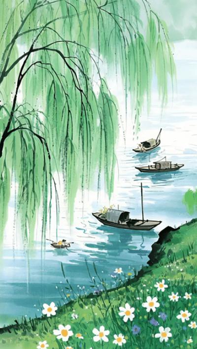 岸柳青青,莺飞草长