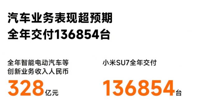 但是去年全年,小米汽车共同交付。 136,854 辆小米 SU7 智能电动汽车系列汽车 ASP(平均销售价格)为每辆车 234,479 元。
