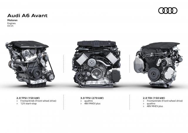 动力方面,全新奥迪 A6 Avant 基于 PPC 搭建豪华燃油车平台,配置三个发动机, 2.0T 汽油机,3.0T 汽油机和 2.0T 柴油机。2.0T 汽油发动机的最大功率是 150kW(204 最大扭矩的马力) 340 牛 · 米。