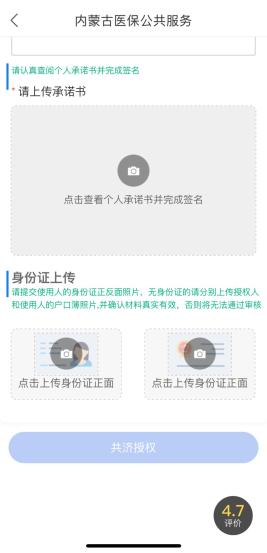 3.阅读个人承诺书并签字,上传使用人身份证正反面的照片。如果没有身份证,需要上传授权人和使用人户口本上有自己身份证号页面的照片。