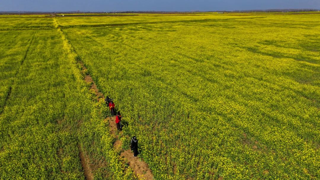“花期结束后,花柄被压成绿肥,继续变成‘护田特使’。后续将在这里种植1万亩大米,继续改良土壤。”老乡鸡农场相关负责人表示。