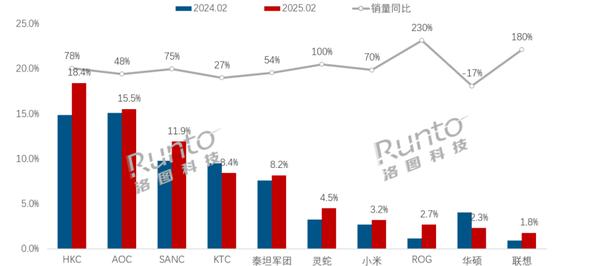 二月份中国电竞显示器在线销售排名:HKC第一 小米第七