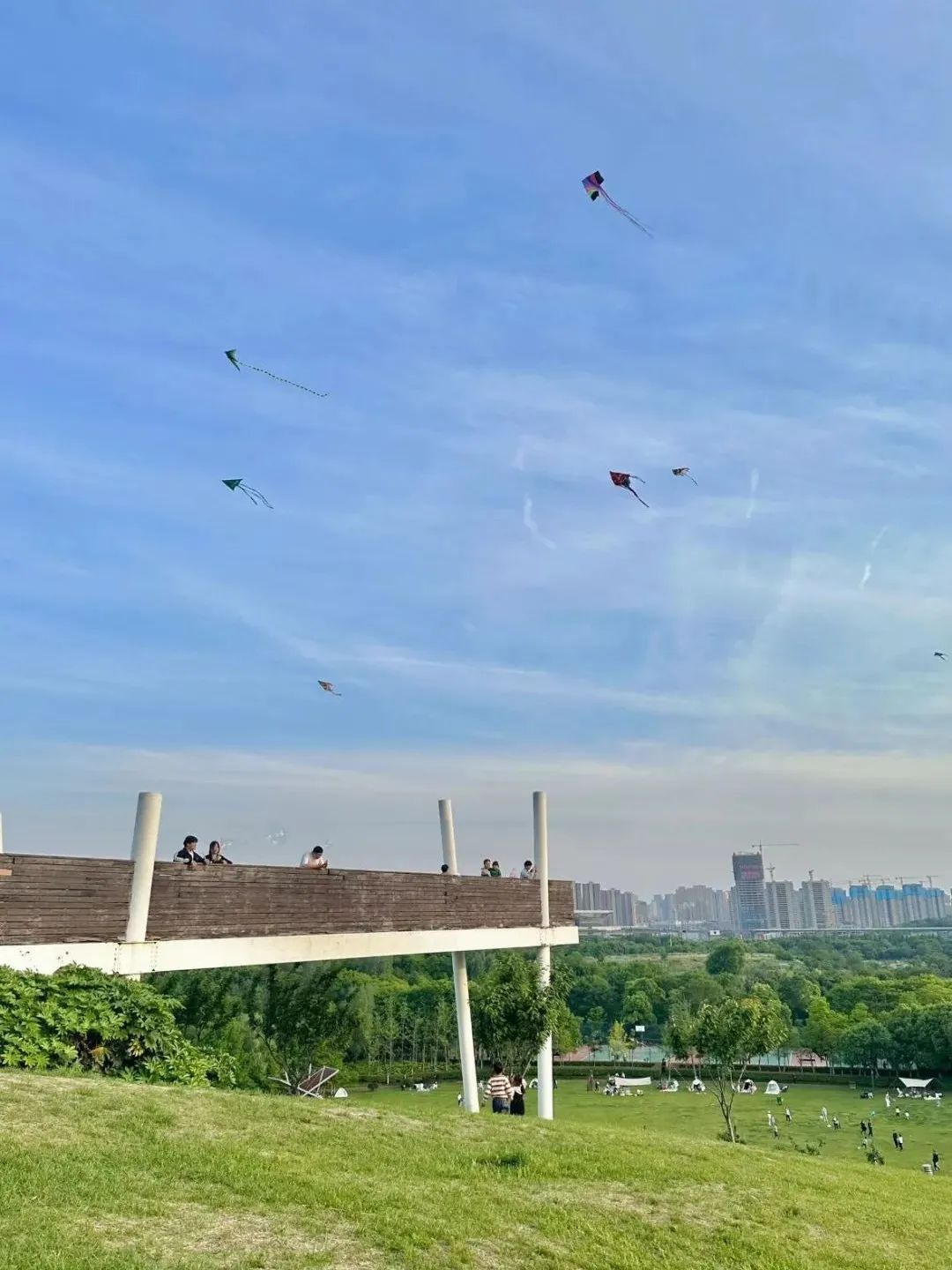 又到了风筝飞起来的时候了。抬头一看,你会发现奥特曼追着哆啦a梦,海绵宝宝和皮卡丘变成了庐州公园独一无二的风景。拉紧手中的线,你就是云剧场的导演。