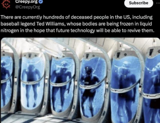 这并不罕见,到目前为止,美国已经有100多人,泡在零下。 196 在液氮罐中摄氏度,等待未来的“复活”。大脑一点的人都知道,这些所谓的“人”,其实就是尸体,他们永远不会醒来。人体结构非常脆弱,更不用说整个人了。即使是最简单的细胞,也会因为霜冻而破坏整个结构,使细胞失去活性。 ... 这几家破企业骗钱,根本不管顾客几百年后解冻,“复活”更是天方夜谈。