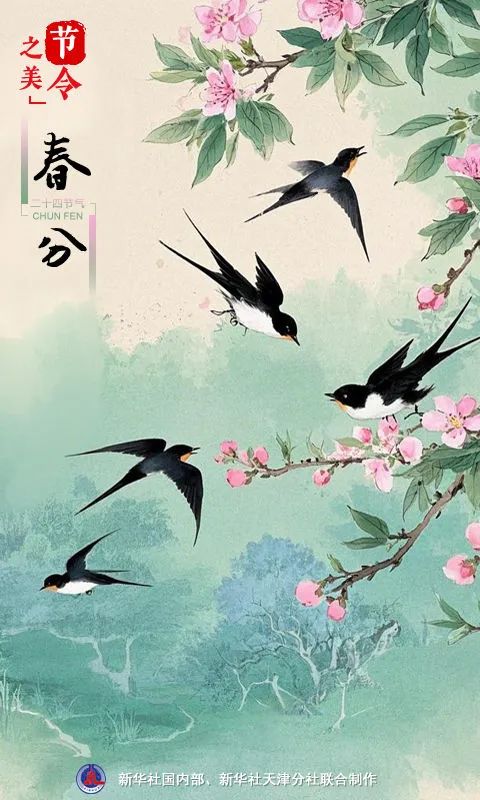 鸟是燕子。在春分,燕子从南向北飞,代表着春天的到来和新生活的开始。在古代,燕子被认为是吉祥的象征,它们的到来意味着春天的到来。
