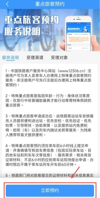阅读重点旅客预约服务说明后