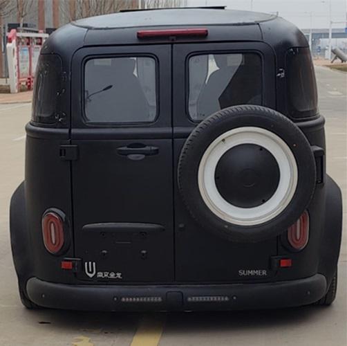 这款新车的外观相当特别,主要推广复古风格。前脸配有两个圆形大灯和类似的灯。 V 梯形中网,前脸饰条一直延伸到车辆侧面。与此同时,新车拥有大尺寸的下包围和轮毂,配有白色轮毂,整体呈低趴姿态,尾端挂着一个“小书包”备胎。另外一个独特的地方是,新车的侧面有 3 扇门,后面两边的门可以对开;停车位也采用对开门的方式。