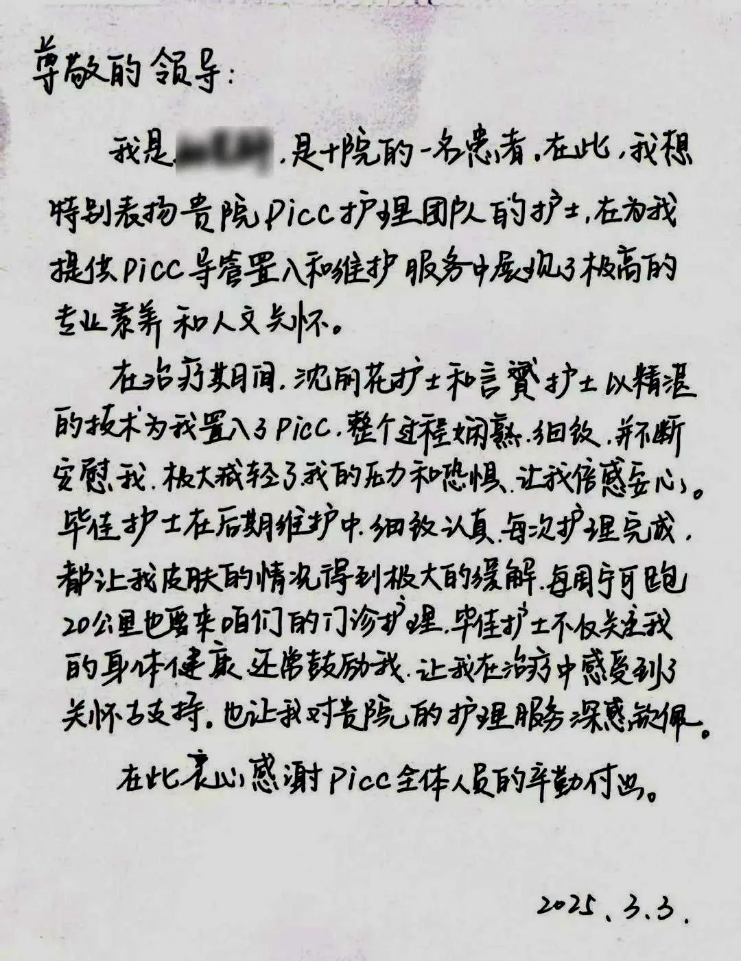 题目:“每周宁可跑20公里,也要来十院PICC护理门诊…”