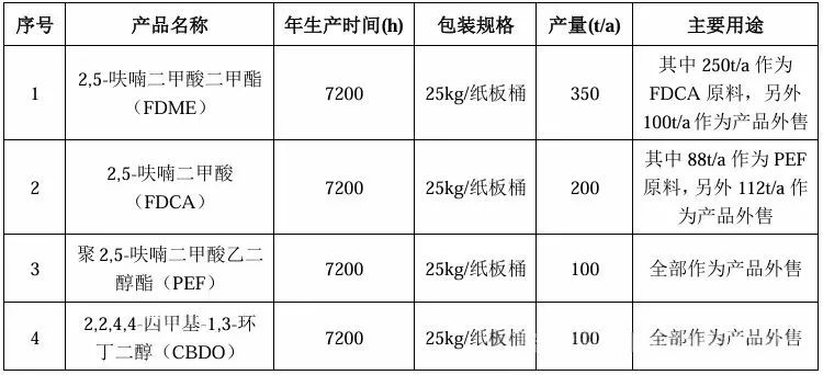 据悉,该项目总投资8000万元,租用商河化工产业园产业孵化器内车间建设。总建筑面积4477平方米,建成后年产量25-呋喃二甲酸二甲酯。(FDME)250吨,2,5-呋喃二甲酸(FDCA)200吨,聚2,5-呋喃二甲酸乙二醇酯(PEF)100吨,2,2,4,4-4羟基-1,3-环丁二醇(CBDO)100吨。