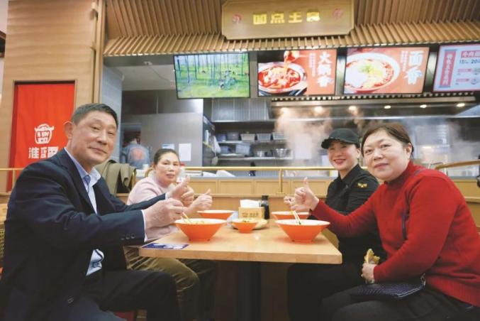 "民以食为天,旅游不可缺少‘吃’。把‘流量’变成‘留量’,淮南牛肉汤就可以了!“淮蓝香牛肉汤创始人、淮南牛肉汤推广大使朱磊磊认为,文化餐饮旅游是一个与产业链相关的行业,需要人气和烟火。为了创造新的消费模式,有必要合作发展。淮蓝香于2024年12月积极响应政府号召,在春申里文旅街区设立淮蓝香牛肉汤旗舰店,深受消费者喜爱。每到周末,都有外国游客来这里,原汁原味的牛肉汤让他们爱上淮南,记住淮南。