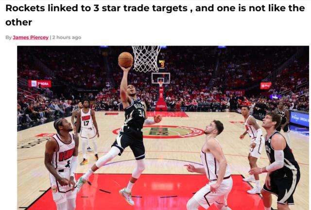 因此,《bleacherreport》还结合比赛到目前为止交易市场上的谣言,赠送给火箭。 3 主要目标:布克,杜兰特和字母哥,并认为火箭应该首选字母哥,其次是杜兰特和布克。
