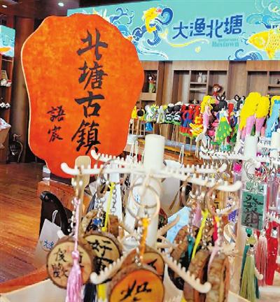 如何丰富古城的商业类型,改善商品同质化?记者了解到,为了加强文化识别,北塘古城管理人员围绕当地独特的渔盐文化,制作了源于《山海经》中的文化旅游形象 IP “大渔北塘”。目前,“大渔北塘”文化创意自营店除了销售具有北塘特色的盐雕等文化创意产品外,还在策划设计“大渔北塘”专属文化创意产品。