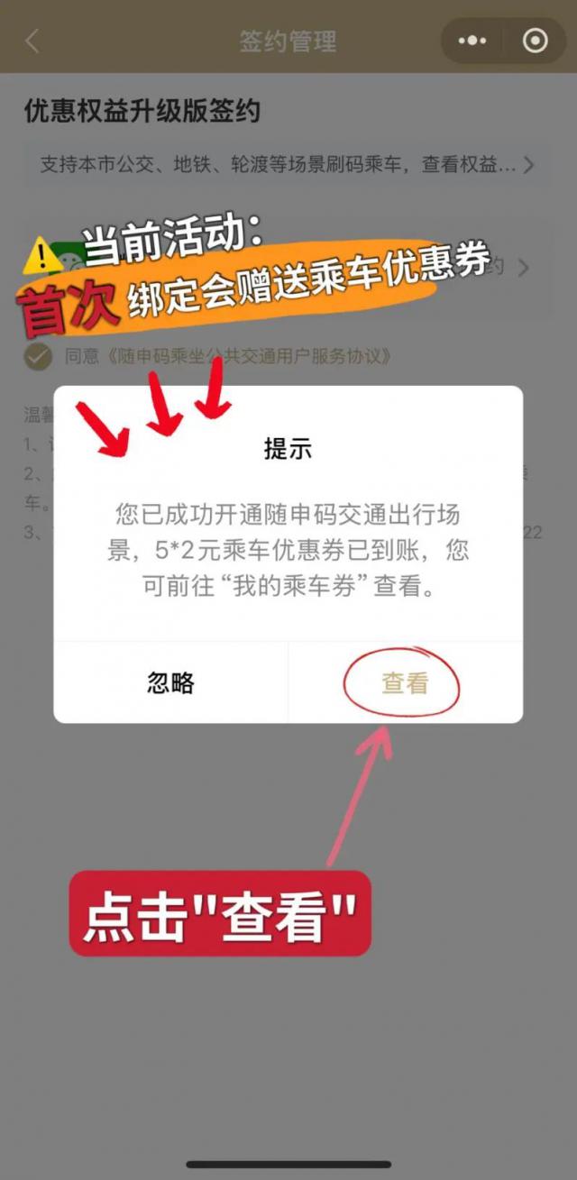 网页弹出“已开通公共交通免密支付”后,点击“完成”,第一次绑定将赠送。 5 张 2 可点击查看元乘车优惠券。