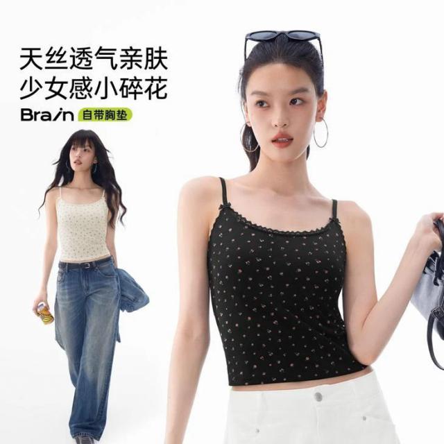 小碎花 Bra 自带胸垫,无需额外佩戴内衣,无论是单独佩戴还是内搭,都能完美展现自然曲线。~
