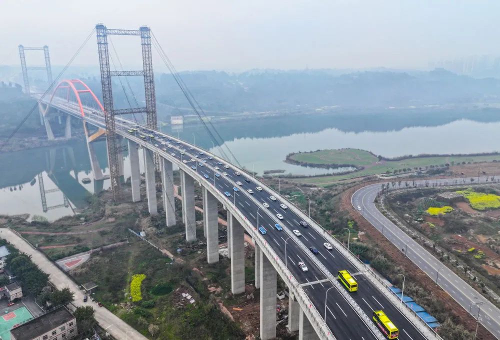 三月二十日,汽车在重庆潼南东升大桥上行驶(无人机照片)。新华社记者 王全超 摄