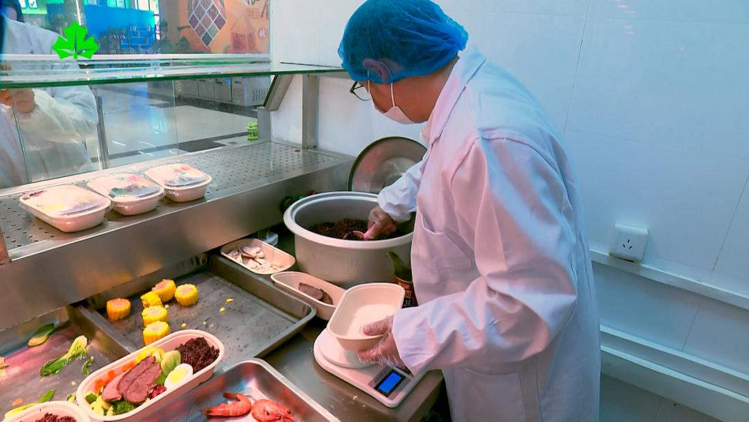 在上海理工大学食堂的厨房里,后勤人员正在组合一顿即将“更新”的健康减脂餐。为了搭配少油少盐营养的减脂餐,上理工大学去医院营养科学习。