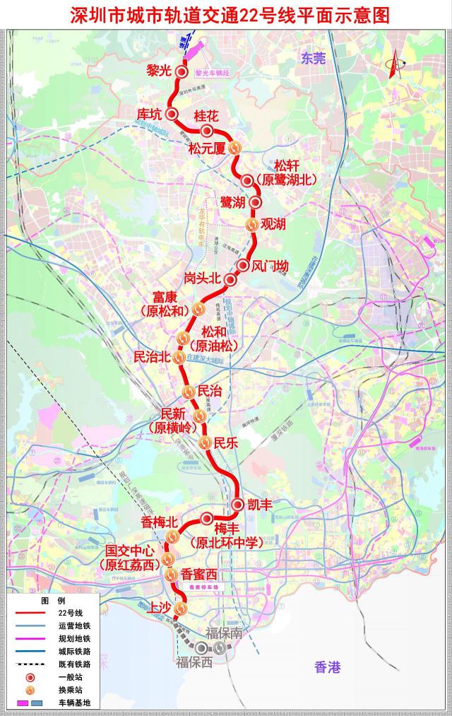 上沙站、香蜜西站、红荔西站、香梅北站、北环中学站、凯丰站、民间音乐站、横岭站、民间治理站、民间治理北站、油松站、松和站、岗头北站、风门站、观湖站、鹭湖站、鹭湖北站、松元厦站、桂花站、库坑站、黎光站。