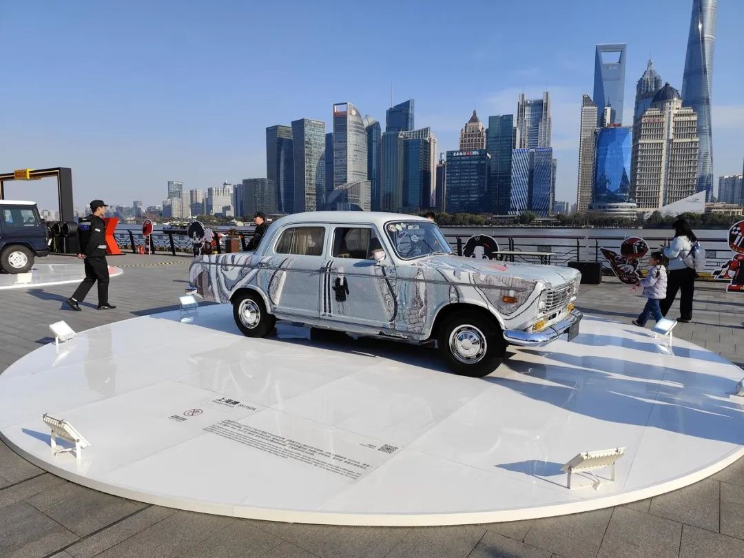 这次活动的亮点还是要回归汽车文化,艾斯把它们放在了嘉年华的入口处。这是一辆翻新的“上海品牌”汽车,一个存在于上海人记忆中的品牌。它的上面覆盖着版画,看起来很不一样。