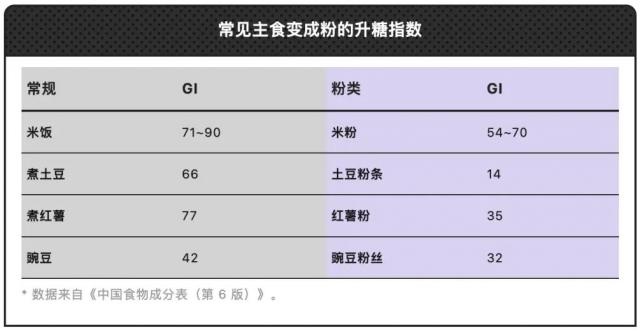 其中一个优点就是炒粉「粉」,中低血糖指数(中低血糖指数),无论是米粉、河粉、红薯粉还是土豆粉。 GI),远远低于米面等晚餐。因为这种粉末在生产过程中,部分淀粉转化为抗性淀粉或慢消化淀粉。