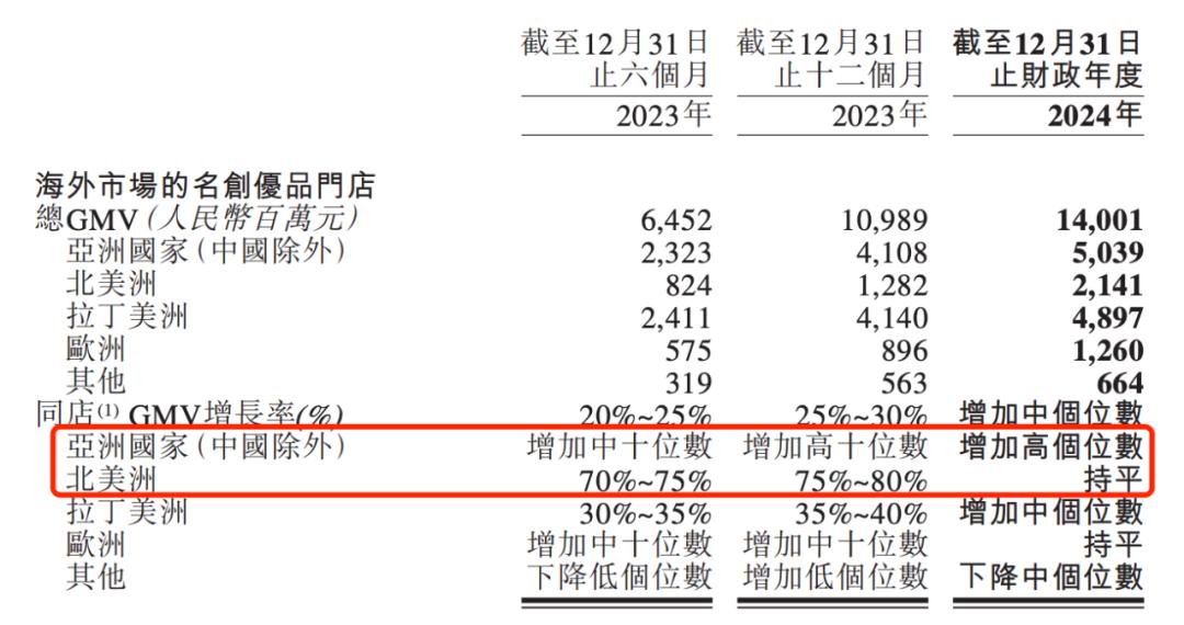 国外同店名创优品的GMV增长率也有不同程度的放缓。其中,在收入占比最大的亚洲,同店GMV增速从23年同期的十位数增长到高位。另外一个被认为是海外重点市场的北美,其增长率从75%-80%变为持平。